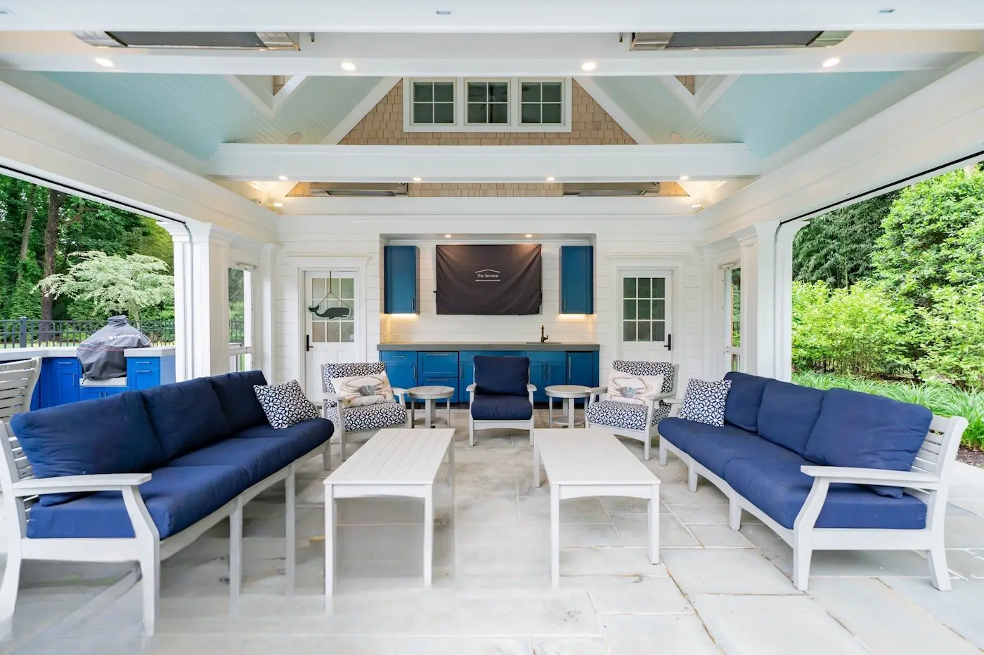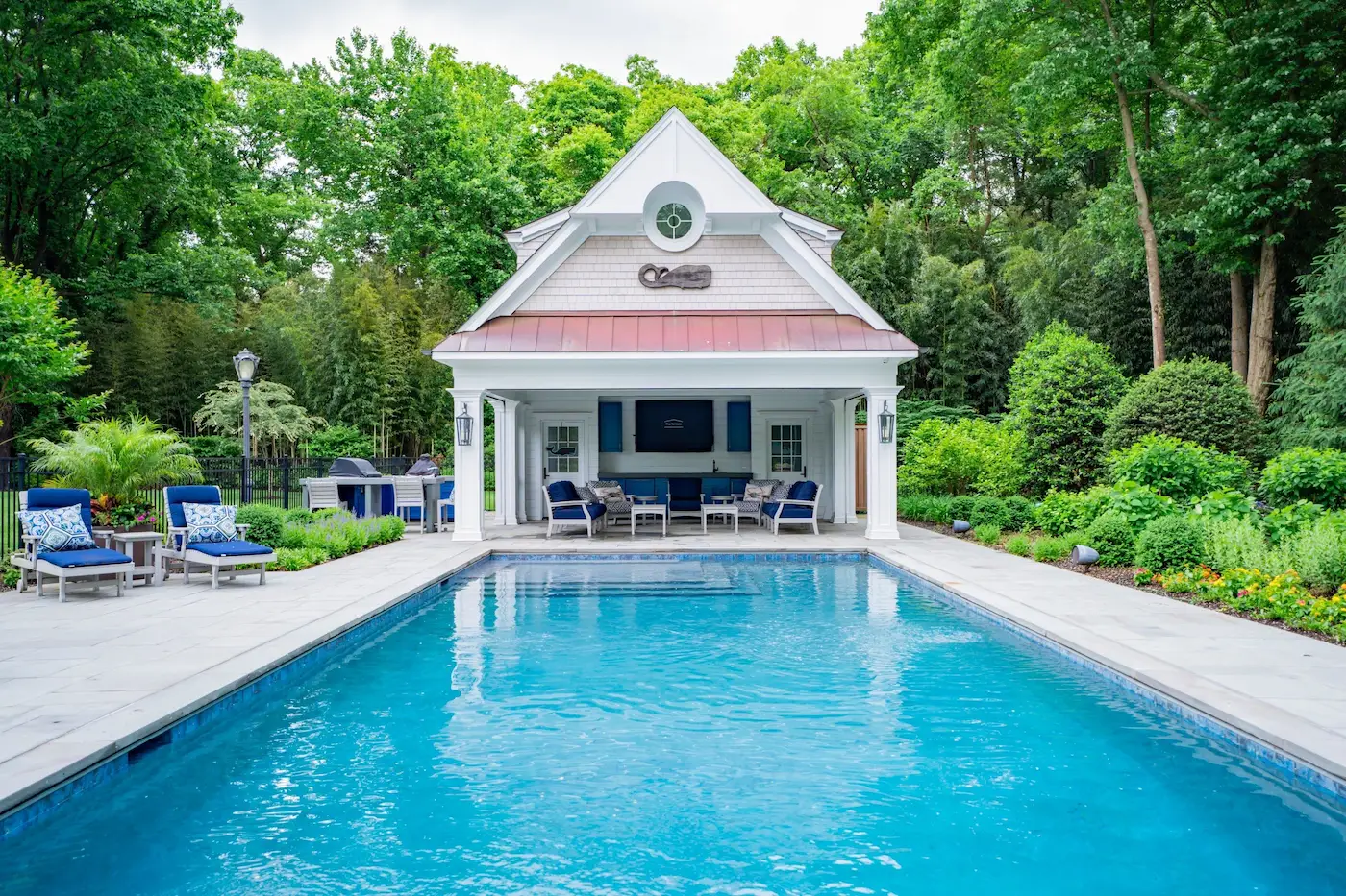 With the main house renovations done in 2018, a cabana was introduced to complete this home. Its matching cedar-siding & copper accents helped tie together a life-long desire for coastal aesthetics. Careful coordination with landscape architects & designers resulted in this charming, nestled home in Lloyd Harbor.